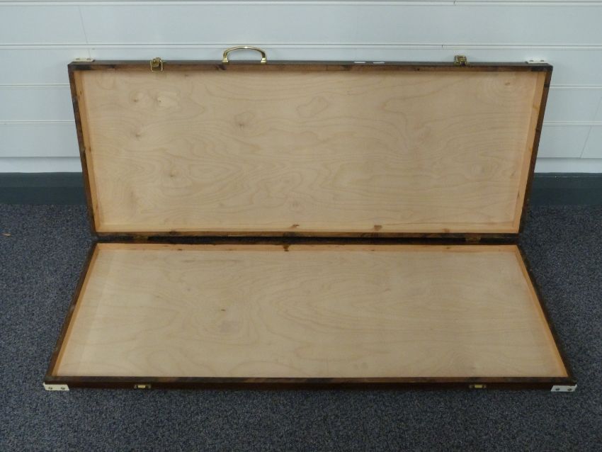 A hinged wooden box/ carry case suitable for guns, 108 x 43 x 8cm