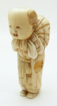 Japanese ivory netsuke depicting a man carrying a sack