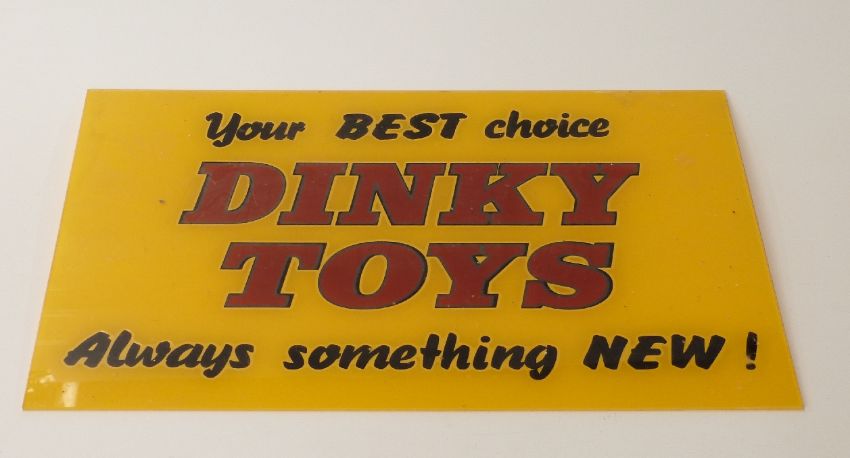 Dinky Toys acrylic shop display / advertising sign 'Your BEST choice DINKY TOYS Always something NEW!' 25.5 x 39cm