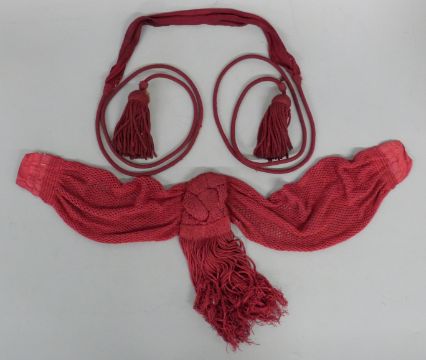 British Army c1800 Light Infantry sash in crimson with two tassels, part of the collection of Sir Thomas Woollaston White, 1st Bt