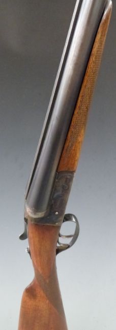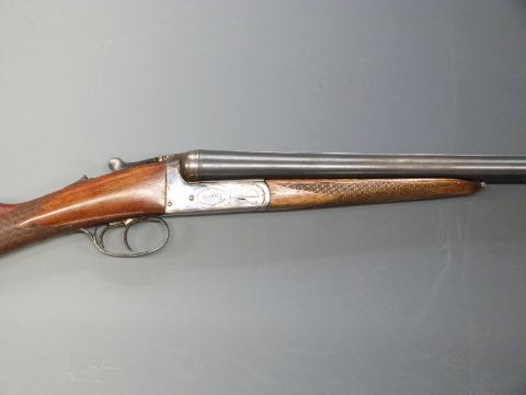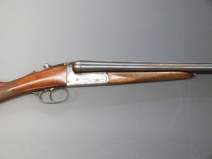 Jabali 12 bore side by side shotgun with named lock, chequered grip and forend, double trigger and 27.5 inch barrels, serial number 61035. PLEASE NOTE THAT A VALID RELEVANT FIREARMS/SHOTGUN CERTIFICATE IS REQUIRED TO HANDLE/PURCHASE THIS ITEM.