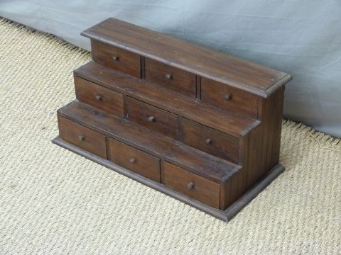 A stepped set of dressing table drawers, W64cm