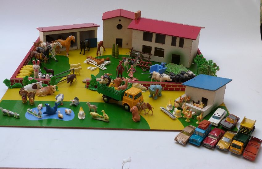 Matchbox Play Book with box, furniture and figures, together with a farm yard and animals