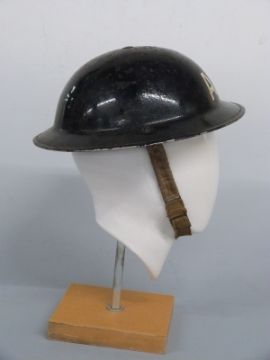 WWII ARP steel helmet complete with liner and chin strap