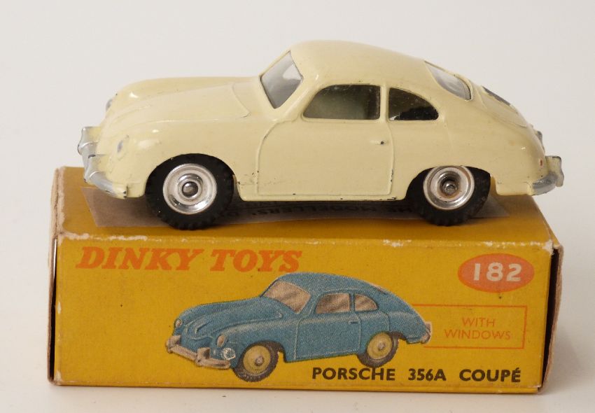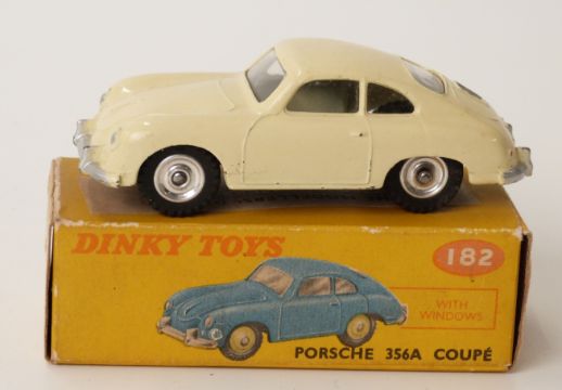 Dinky Toys diecast model Porsche 356A coupe with windows, cream body and spun hubs 182, in original box