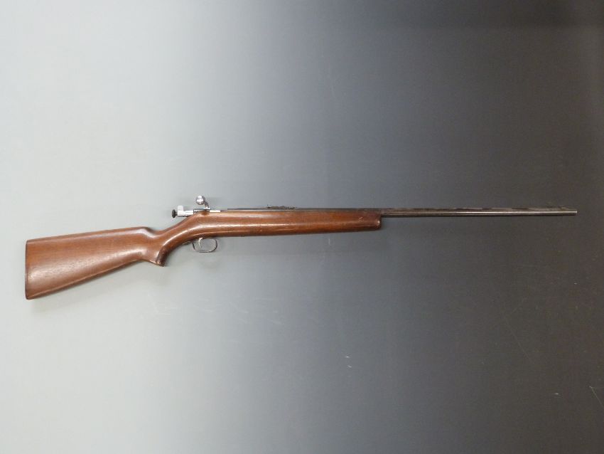 Winchester Model 67 .22 smooth bore bolt action gun with semi-pistol grip, peep sights and 27 inch barrel, overall length 118.5cm, length of pull 34cm, NVSN. PLEASE NOTE THAT A VALID RELEVANT FIREARMS/SHOTGUN CERTIFICATE IS REQUIRED TO HANDLE/PURCHASE THIS ITEM.