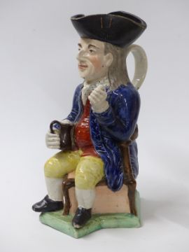 An 18th/19thC creamware 'Squire Toby' jug with foaming quart and shaped base, 29cm tall