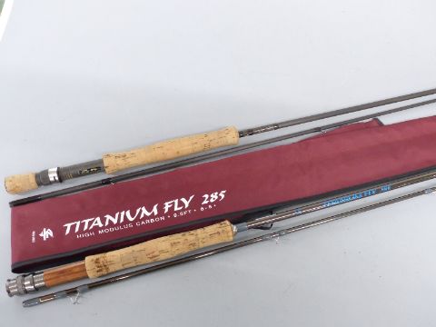 Trevor Morgan Custom fly two piece carbon fibre fly fishing rod dated 2001 10' AFTM 7 and a Pro-Performance Titanium fly 285 two piece high module carbon fibre fly fishing rod 9'5" AFTM 6-8'
