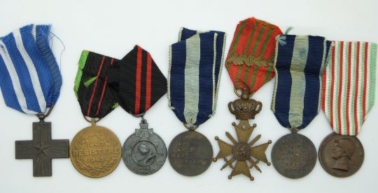 WWI and WWII Allied medals including Belgium Croix de Guerre, Italian War Merit, Greece and Finland, seven in total