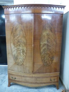 Victorian mahogany bow fronted wardrobe with crossbanded and inlaid detail, W140 x D60 x H204cm