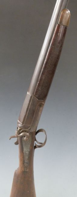 Army & Navy 12 bore single barrel hammer action shotgun with named and engraved lock, chequered grip and horn tipped forend and 30.5 inch Damascus barrel, serial number 41571. PLEASE NOTE THAT A VALID RELEVANT FIREARMS/SHOTGUN CERTIFICATE IS REQUIRED TO HANDLE/PURCHASE THIS ITEM.