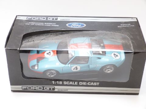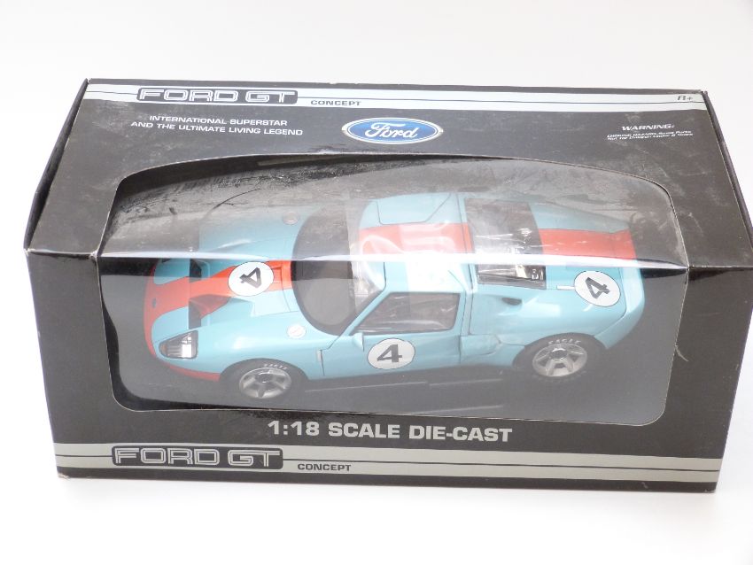 Two 1:18 scale diecast model vehicles Sun Star Classic Rally Collectibles Lancia Stratos 4503 and Ford GT Concept FOR10014T, both in original boxes