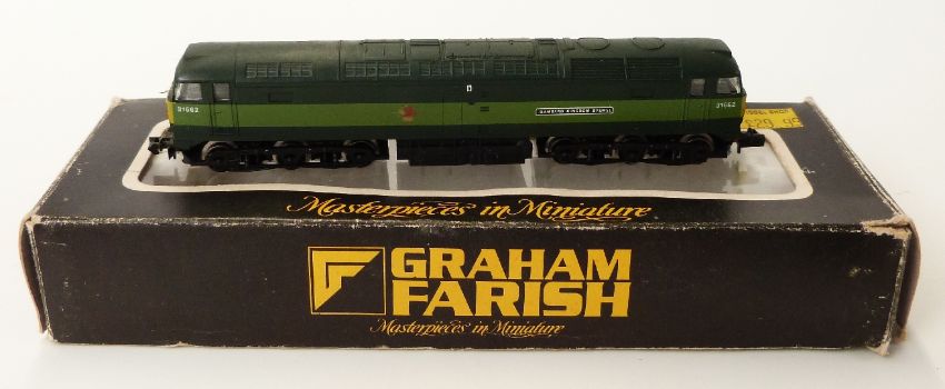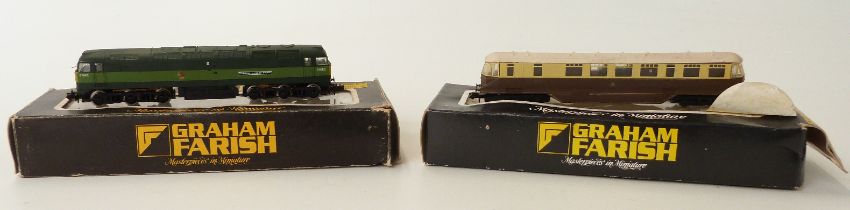 Two Graham Farish N gauge diesel locomotives GWR BO-BO railcar 8174 and BR CO-CO Isombard Kingdom Brunel D1662 8006, both in original boxes