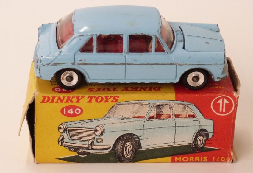 Dinky Toys diecast model Morris 1100 with powder blue body, red interior and spun hubs 140, in original box