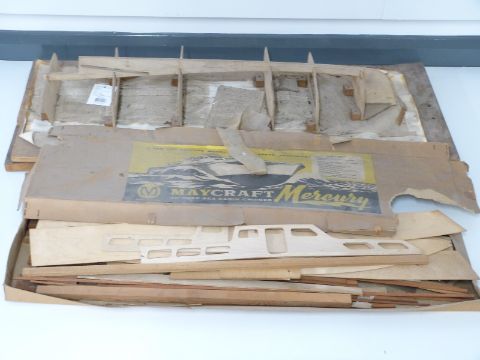 Maycraft Mercury part built 38" Deep Sea Cabin Cruiser wooden model boat kit, with original box.