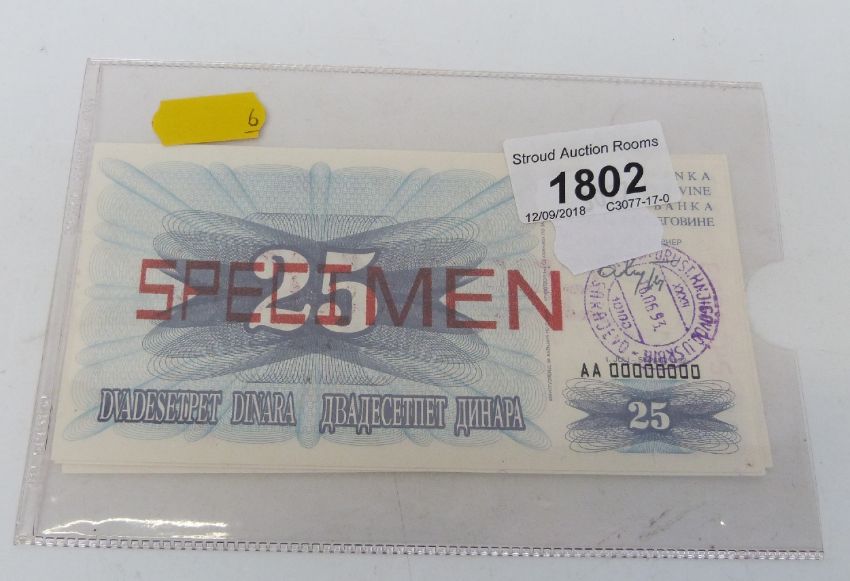 Three Bosne and Hercegovine 10/5/1950 specimen notes, uncirculated