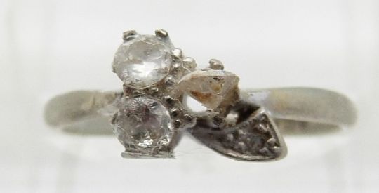 An 18ct white gold ring set with three diamonds in a clover shape, size L
