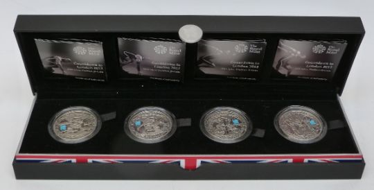 Royal Mint countdown to London Olympics silver proof coin set; 2009, 2010, 2011 and 2012, cased with certificates