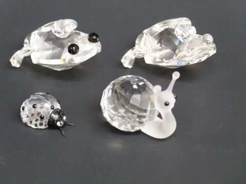 Four Swarovksi Crystal animals Frog Prince, Frog Prince version 2, Snail and Ladybird, largest 5cm long