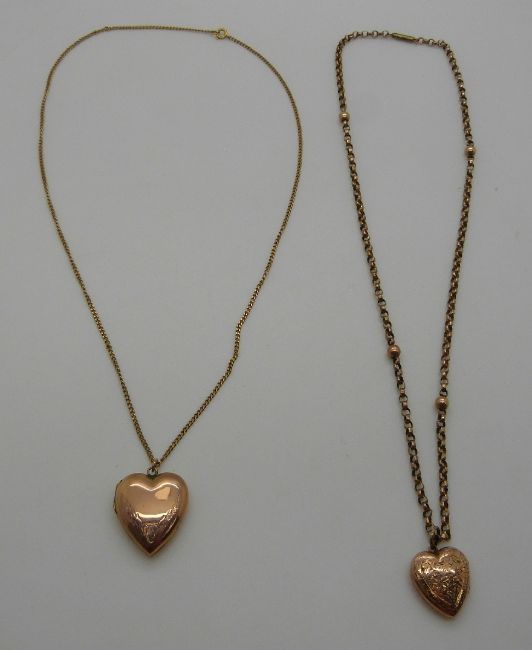 A Victorian rose gold necklace made up of faceted oval links and spheres, 9ct gold chain, 7.8g and two 9ct gold back and front lockets
