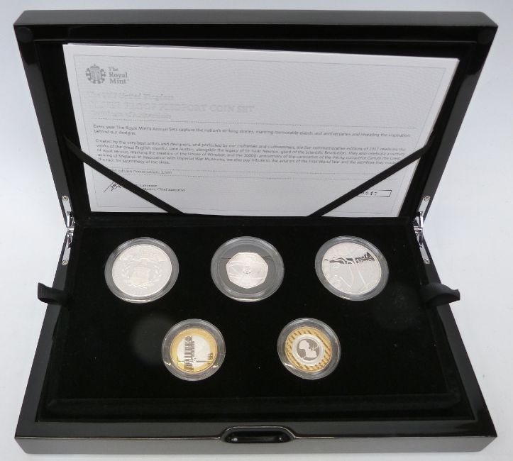 Royal Mint 2017 UK silver proof piedfort coin set comprising five coins including two five pound crowns, cased with certificate no. 0047