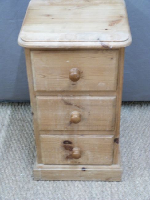 Pine bedside chest of three drawers W35 x D32 x H62cm