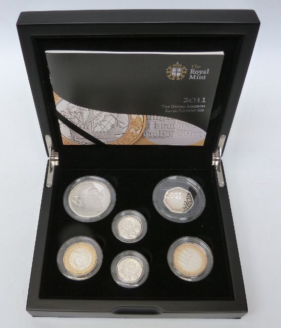 Royal Mint 2011 silver proof piedfort coin set, cased with booklet