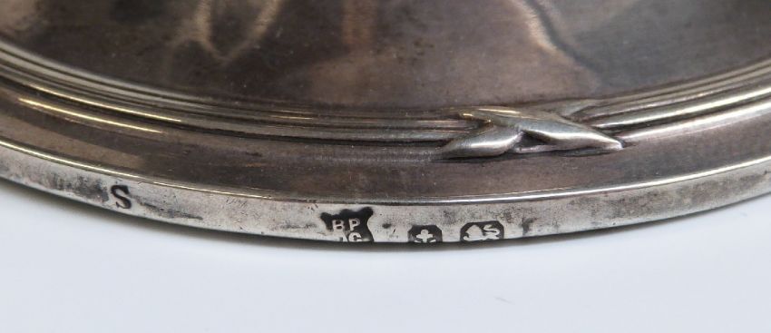 Early 20thC hallmarked silver capstan inkwell, diameter 11cm, marks rubbed