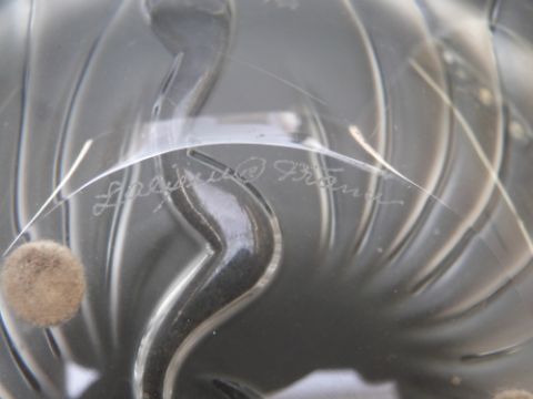 Lalique Nancy frosted and clear glass bowl/ dish in the form of a stylised shell, signed Lalique France to base, 21cm long.