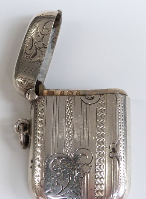 Edward VII hallmarked silver vesta with engraved decoration, Birmingham 1906, maker's mark J.G, height 5cm