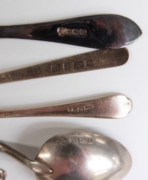 A quantity of Georgian and later hallmarked silver cutlery including a Newcastle example and a Vermont spoon marked sterling, weight 267g and a silver plated Rolex spoon