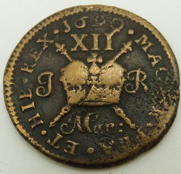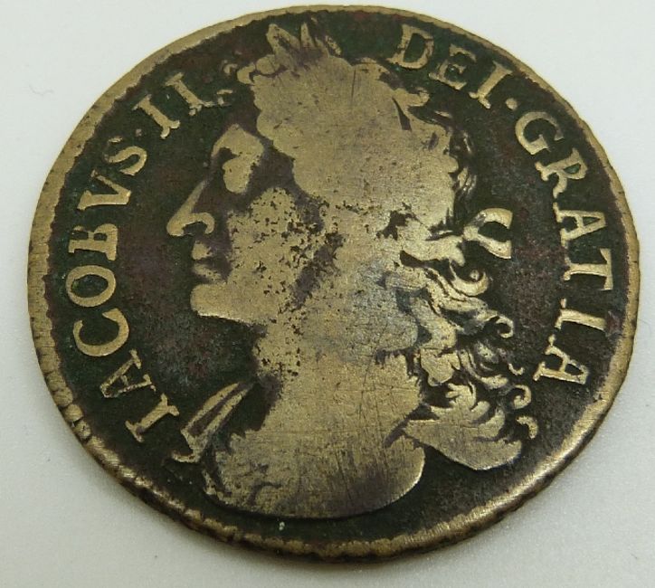 James II Irish gun money comprising 1689 halfcrown and a 1690 shilling, both F, together with a mid-17thC Kilkenny token