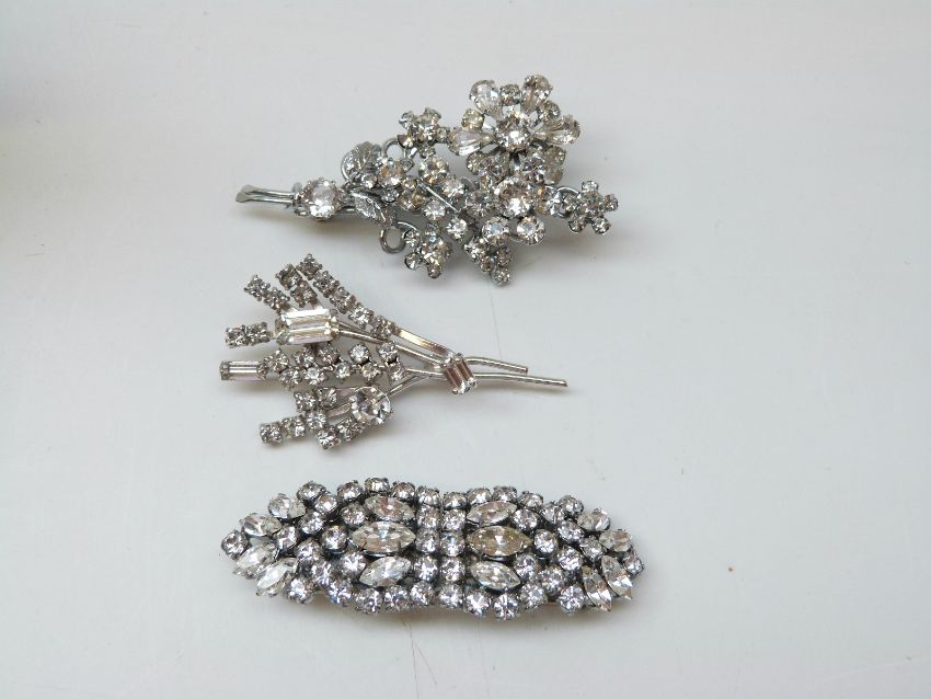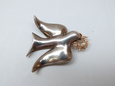 A silver brooch in the form of a dove holding a 14k gold branch, Charles Horner silver bangle, silver choker necklace, diamanté bracelet and brooches etc