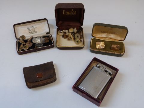 A collection of costume jewellery including necklaces, cufflinks, studs, Ronson lighter etc