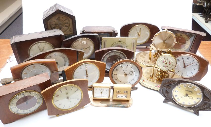 Nineteen various mantel clocks to include a late 19thC Wurtemmberg, Smiths, Metamec, Europa, Enfield etc