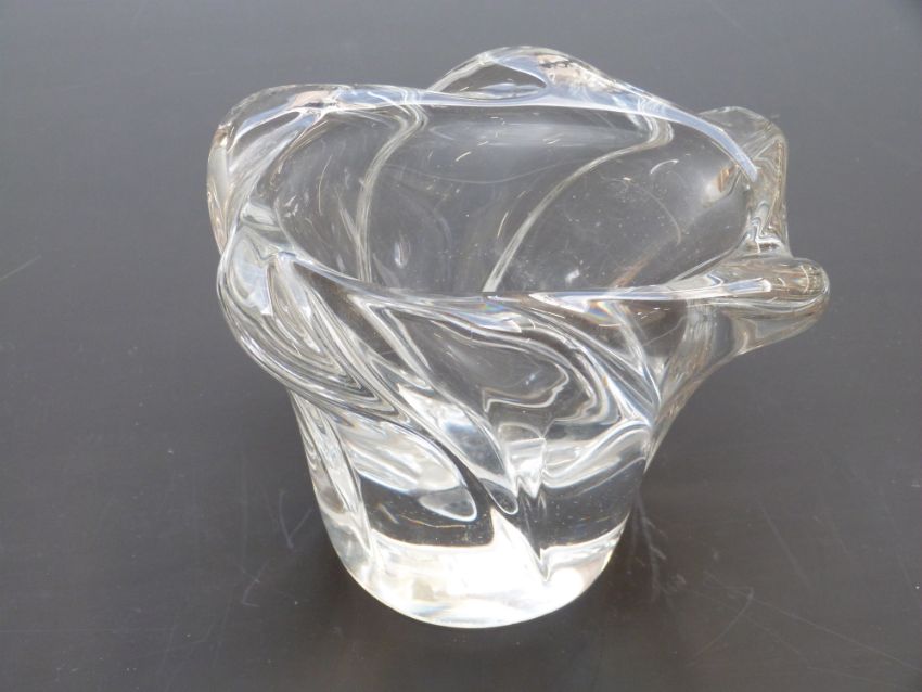 Daum clear glass vase of lobed form, 13.4cm tall.