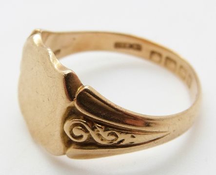An 18ct gold signet ring with vacant cartouche, size V/W, 7.20g