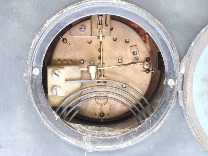F Marti and Co 19thC French slate mantel clock with ivory coloured Arabic chapter ring and beetle and poker hands