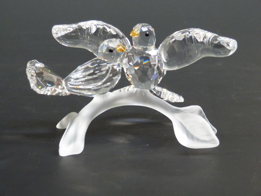 Swarovski Crystal cut glass figure group Turtledoves, in original box