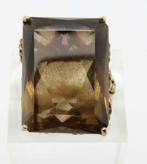 A 9ct gold ring set with a large smoky quartz, size P