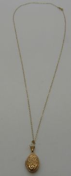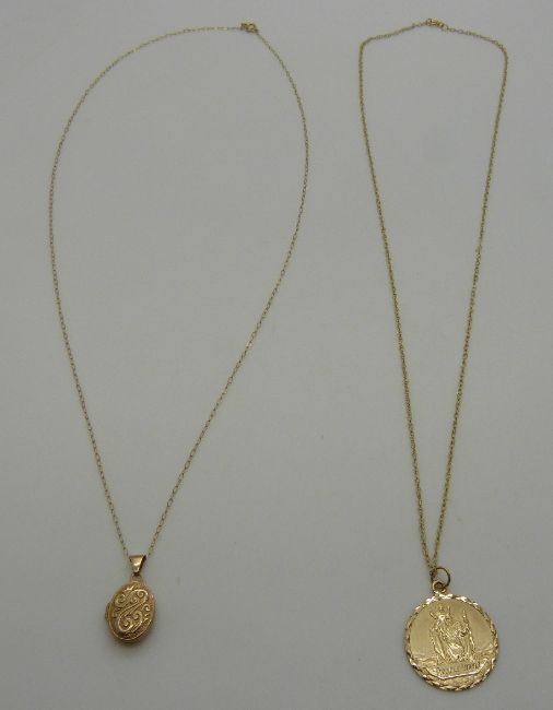 A 9ct gold St Christopher on a 9ct gold chain and a 9ct gold locket on a 9ct gold chain, 3.81g