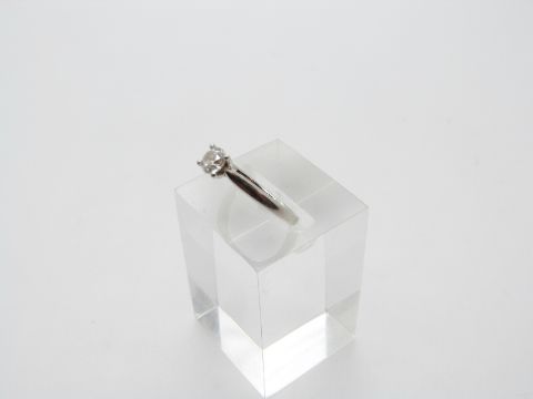 A platinum ring set with a round brilliant cut diamond of approximately 0.5ct, size K