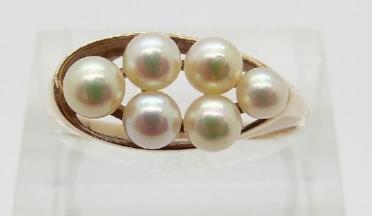A 9ct gold ring set with pearls, size Q