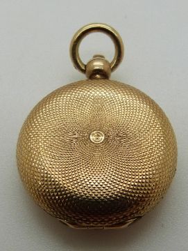 A yellow metal Victorian locket with engine turned decoration, 5.31g