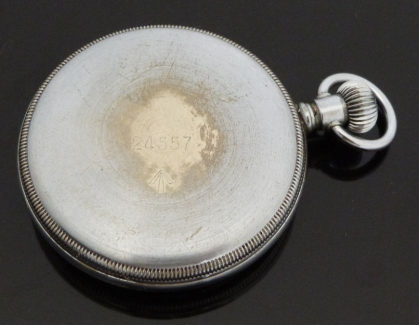 Waltham military issue open faced keyless winding pocket watch with black face, Arabic numerals, inset subsidiary seconds dial, screw case back marked 'I 1317 G.S.MK II' below ministry broad arrow and signed nine jewel movement, case diameter 51mm, serial number 4714006.