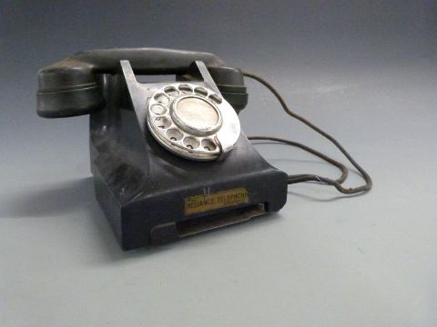Vintage telephone marked Reliance Telephone Company Ltd and tel/IP/ATS to base