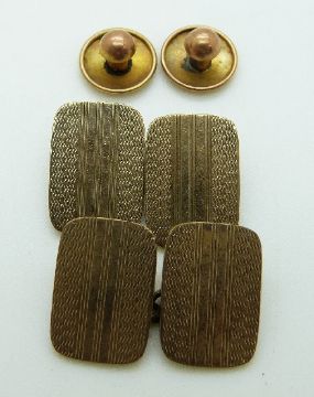 A pair of 9ct gold engine turned cufflinks and two gold studs, 7.06g