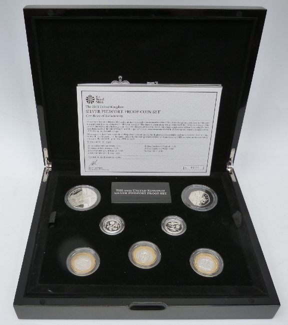 Royal Mint 2013 UK silver proof piedfort coin set, comprising seven coins including a five pound crown and three two pound examples, cased with certificate no. 0160