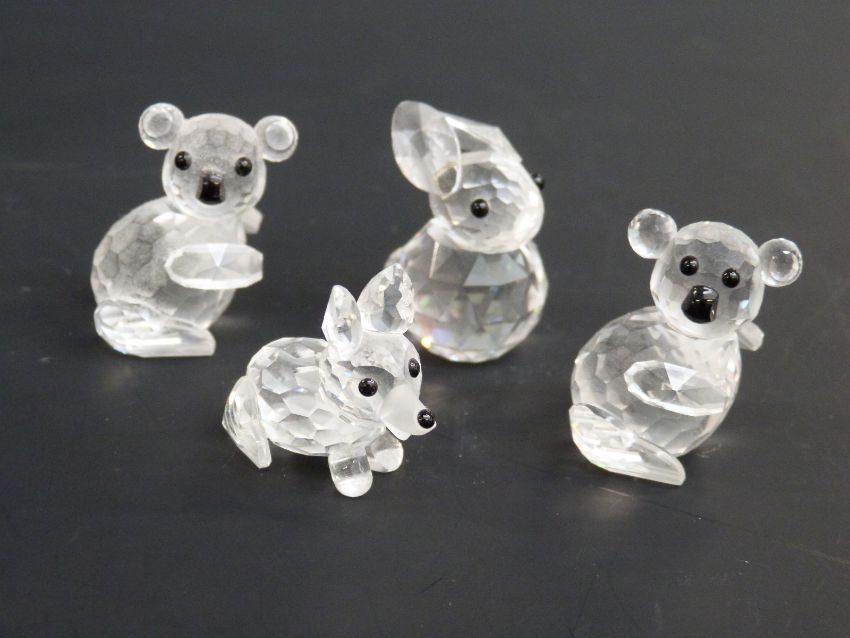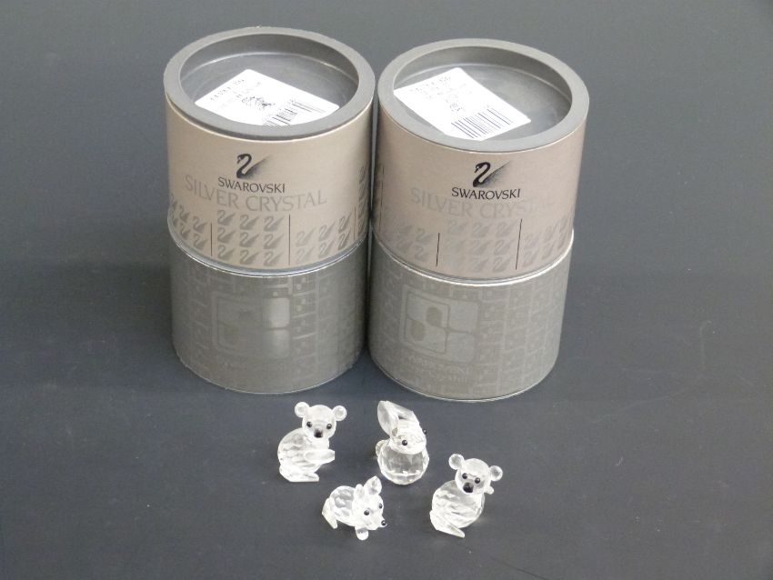 Four Swarovski Crystal cut glass figure groups two Koala Bears, Fox Cub and Rabbit, in original boxes