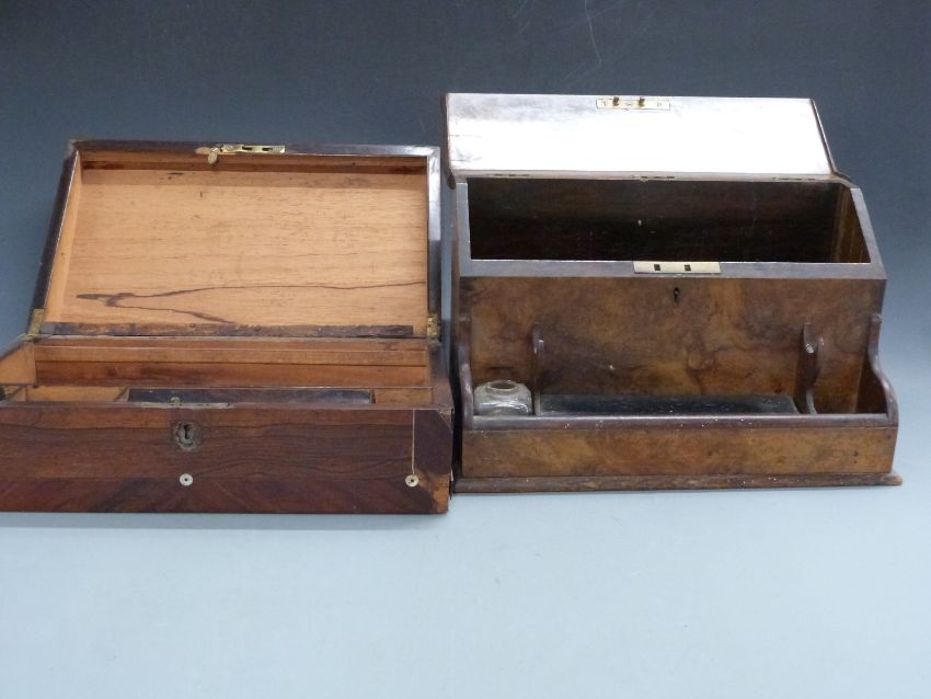 A 19thC rosewood writing slope with mother of pearl inlay, width 40.5cm